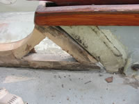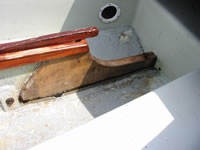 The floor area tanks joins are to be strenghtened with an west expoxy glass tape reinforcement along the whole length each side. I'll seal the existing plastic with a coat of epoxy before i put some new dek paint on.Ive started to drill in to the voids under the lip thats meant to be bonded to the hull i'll inject expoxy in there as well. I'm also going to bond in a few hardwood attchment points for the new systems. ( A big tip is, if you have a window company that makes hardwood windows they should be happy to let you have offcuts it's amazing the nice bits of wood they throw away or chip)
